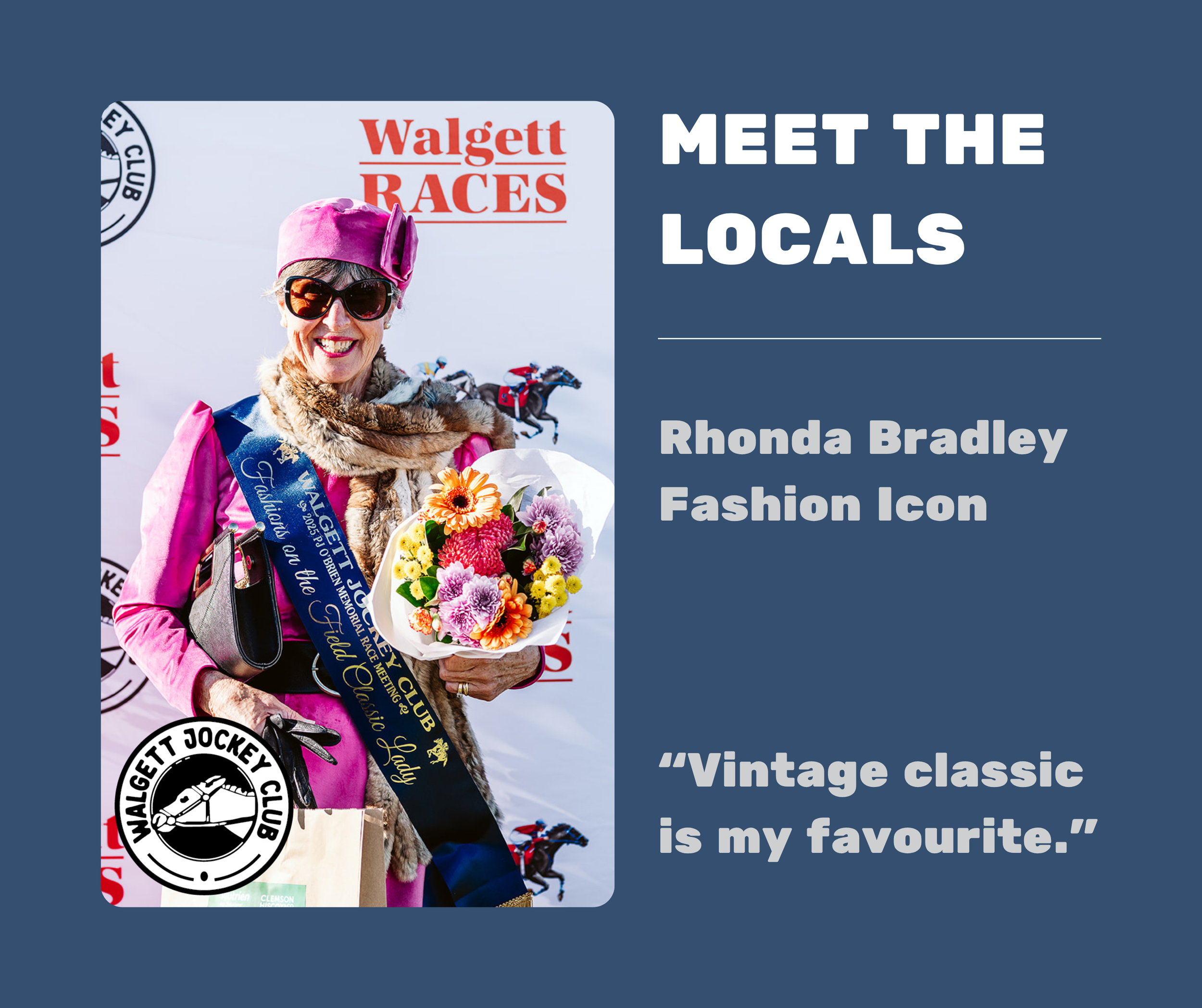 Meet Rhonda — a long-time local who loves the elegance of Fashions on the Field and never misses a chance to see what icons Jan & Jill are wearing. From timeless looks to trackside traditions, she shares what makes Walgett style so special.